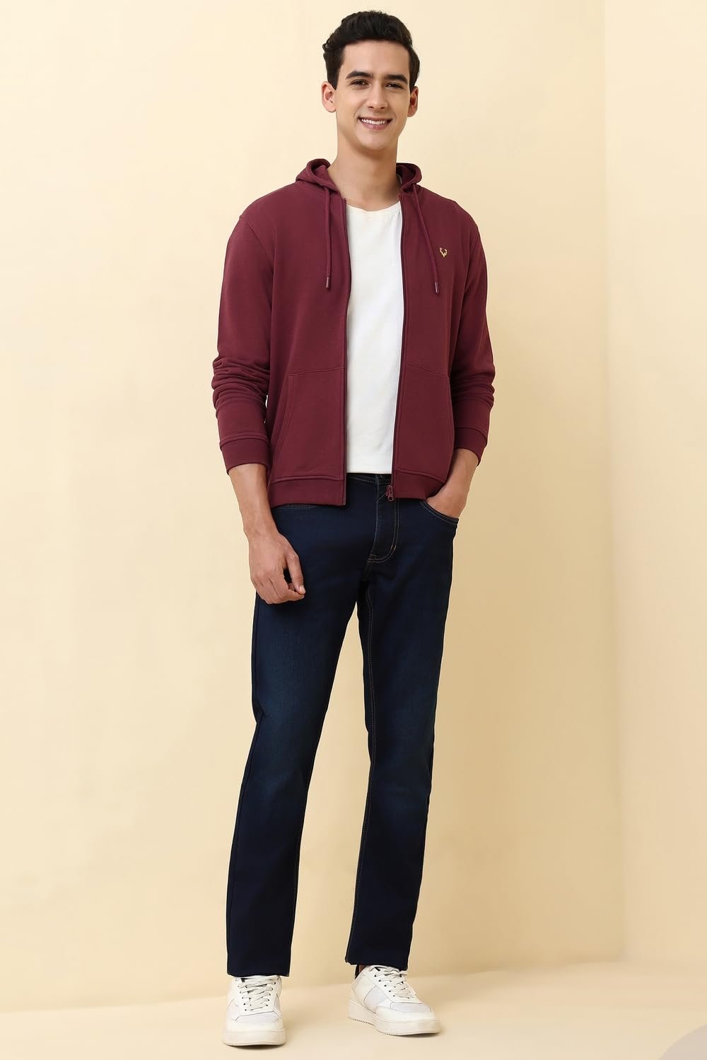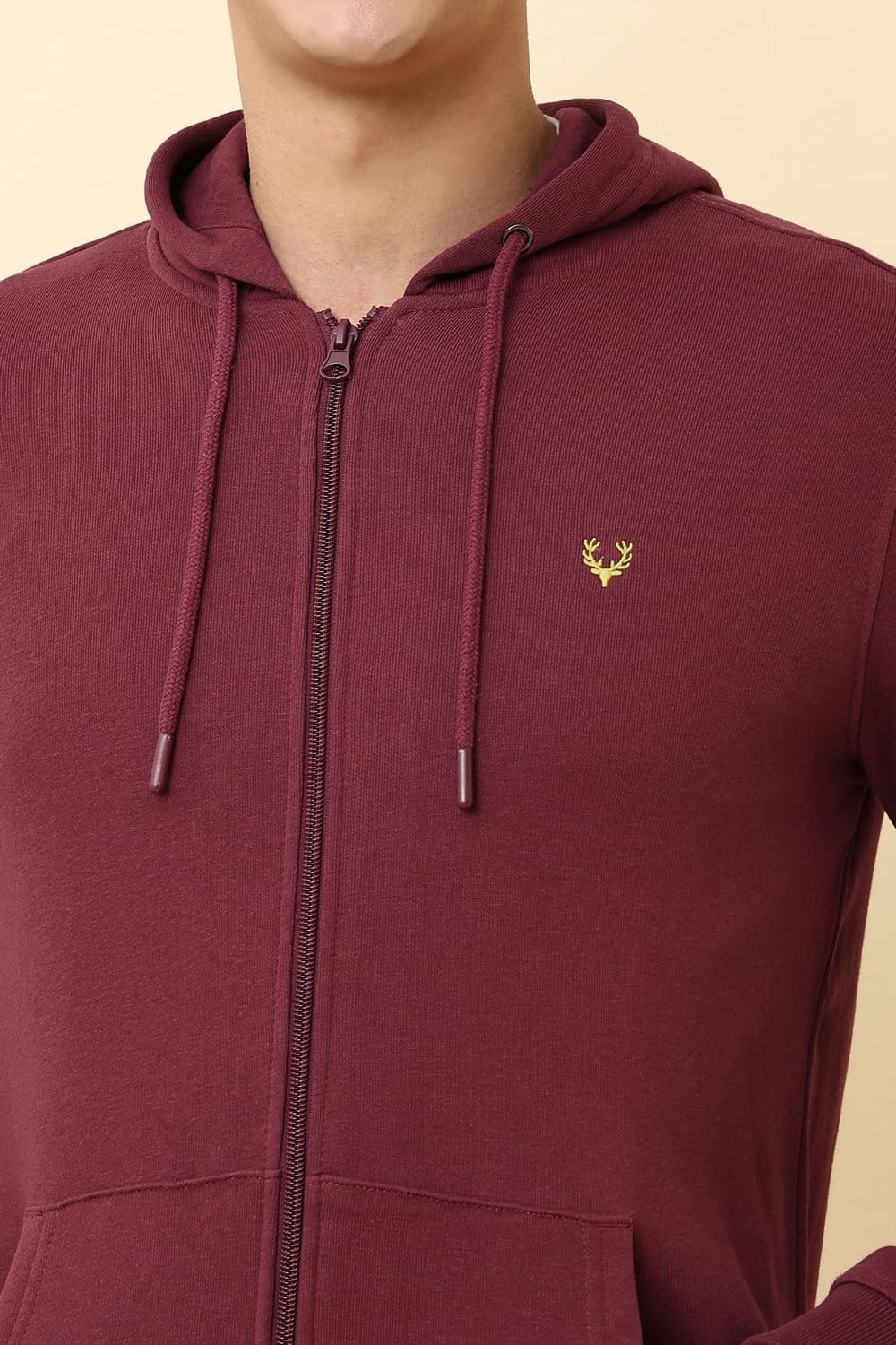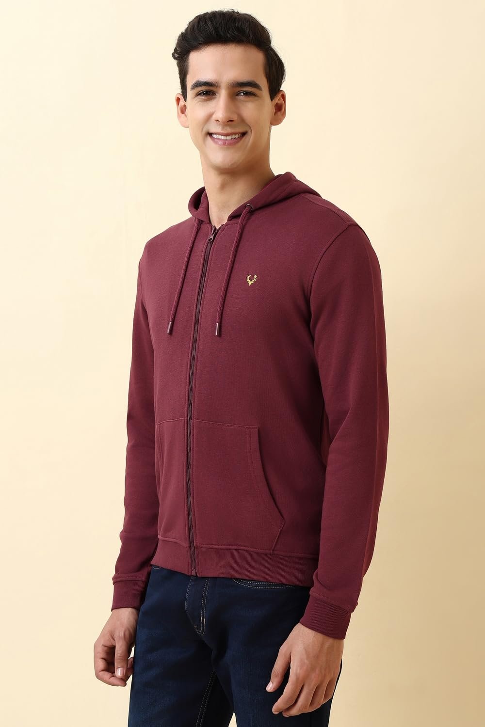 Allen Solly Men’s Sweatshirt with Hoodie (ASSTQRGFZ16336_Maroon_M)