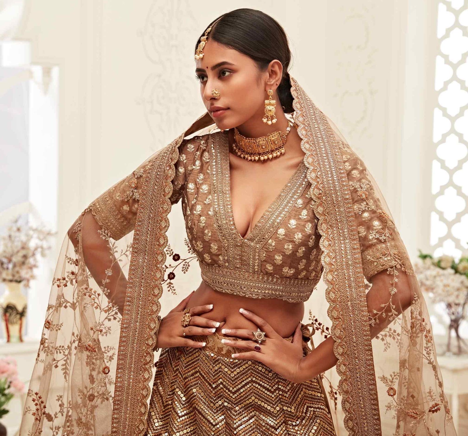 - Lehenga Colour:- BROWN || Blouse Colour:- BROWN || Dupatta Colour:- BROWN