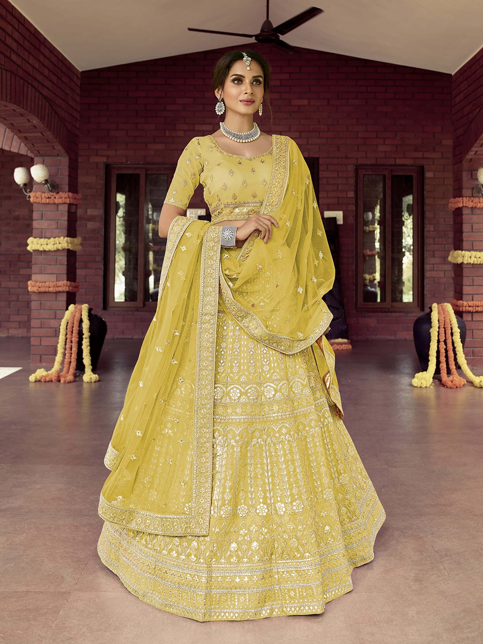 - Matching net base dupatta comes with this lehenga