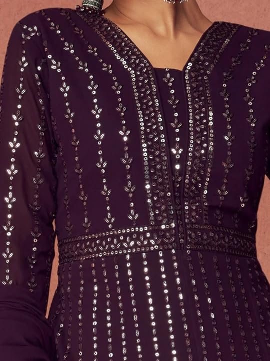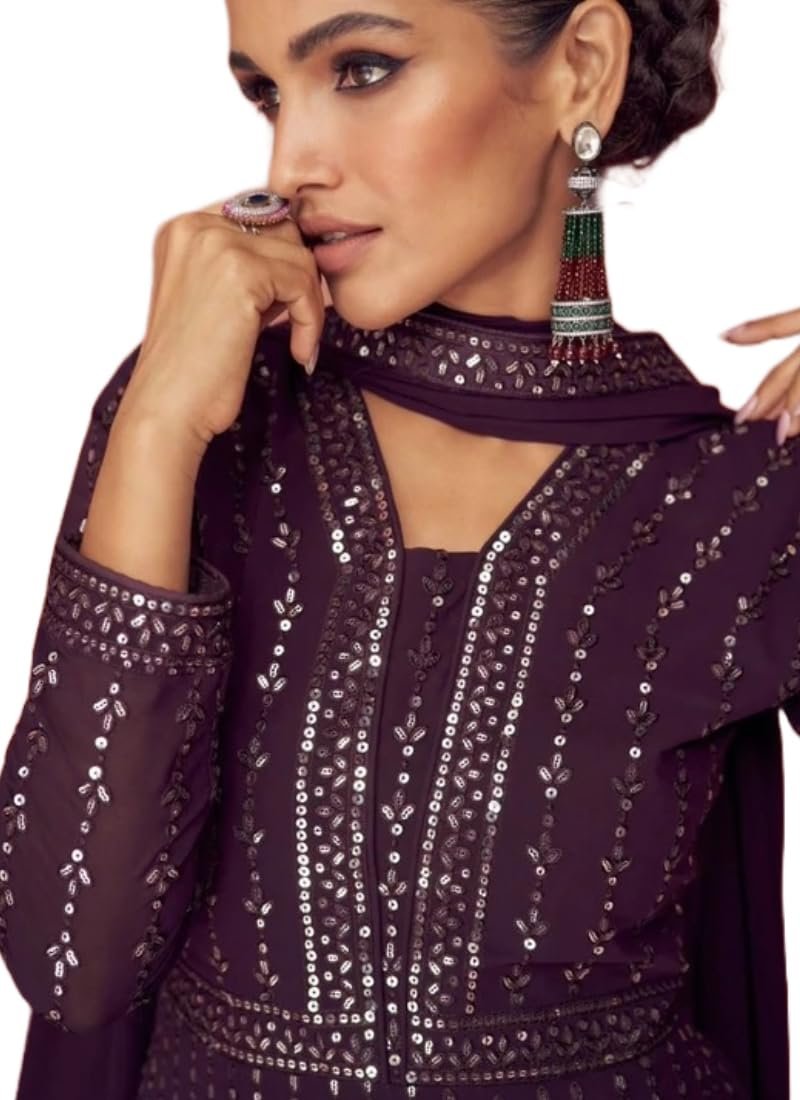 Miss Ethnik Women’s Faux Georgette Full Sleeve Stitched Embroidered Floor Length Purple Anarkali Maxi Gown with Dupatta (ME-1106-Purple-3XL)