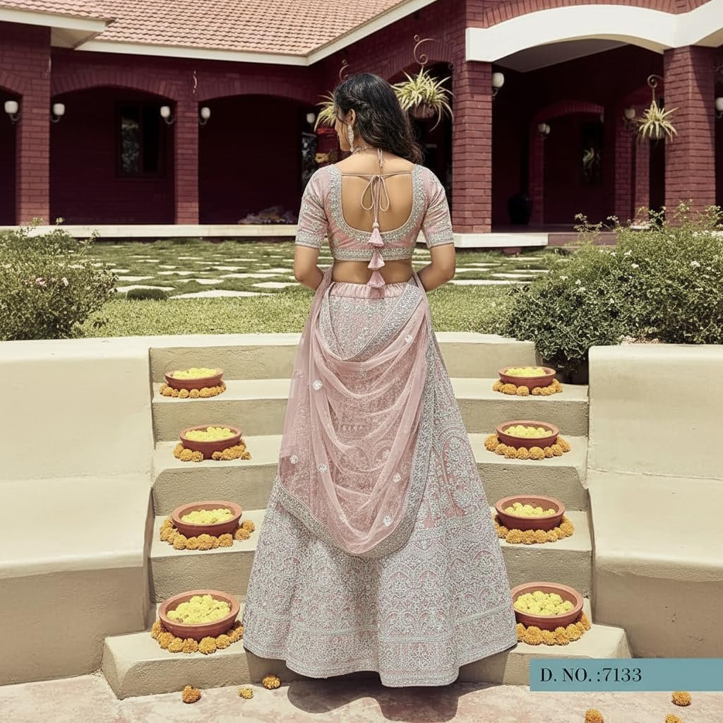 • Premium Organza Fabric – Made from high-quality organza material, this lehenga choli set offers a rich, lightweight feel with a graceful fall, giving a luxurious appearance while ensuring comfort during long festive events.