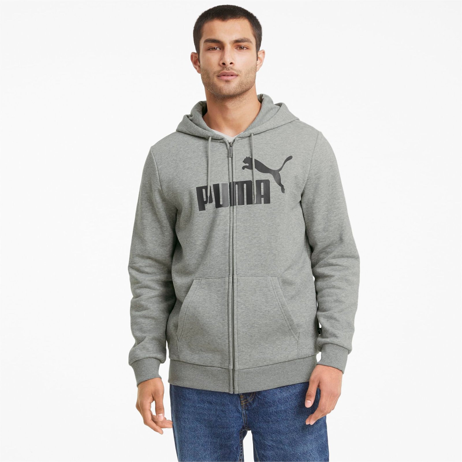 PRODUCT STORY: Made with premium cotton from the Forever Better Initiative and recycled polyester, this full-zip knitted Essentials classic scores points for both style and sustainability.FEATURES & BENEFITS Recycled Content: Made with at least 20% recycled material as a step toward a better future DETAILS Regular fit 66% cotton, 34% polyester Recycled – fleece Jersey-lined hood with drawcord for an adjustable fit Full-zip closure Side pockets for convenient storage of belongings Ribbed cuffs and hem PUMA No. 1 Logo rubber print at chest Cotton and recycled polyester