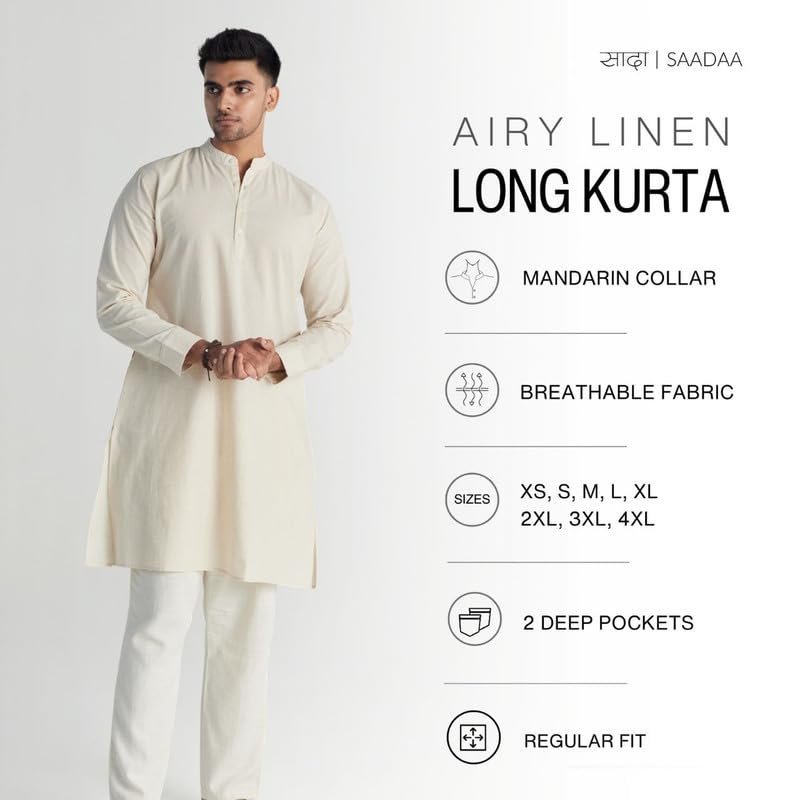 - Fabric :- Cotton Linen Blend Men’s Kurta || Pattern :- Solid Kurtas for men || Length Type :- Knee Length Kurta || Fit Type :- Regular Fit || Coller :- Mandarin/Chinese collar || Package Contain :- 1 Casual Long Kurta For Men.