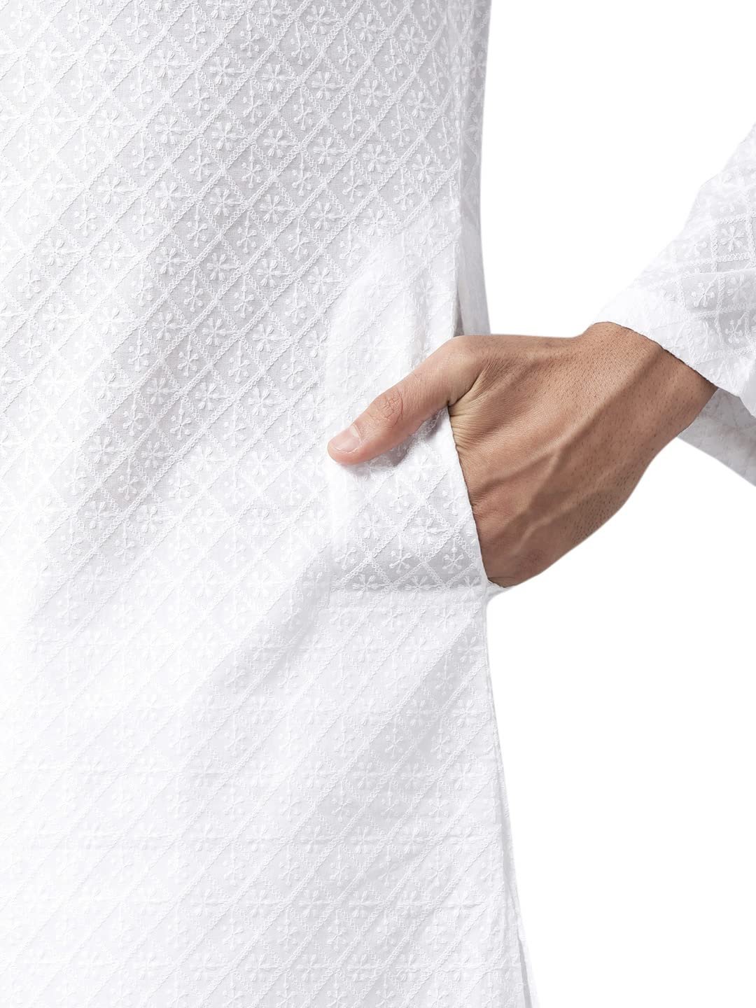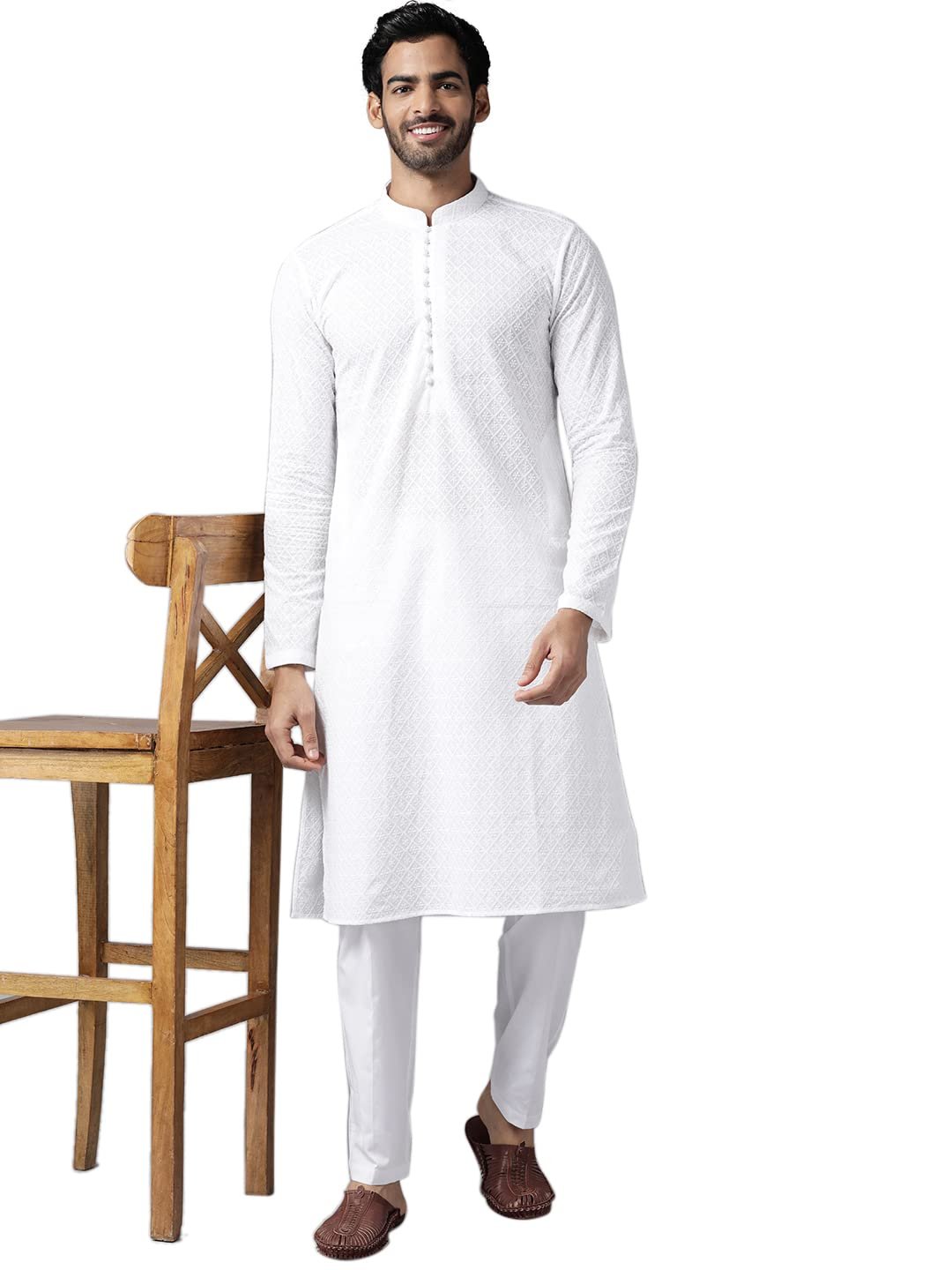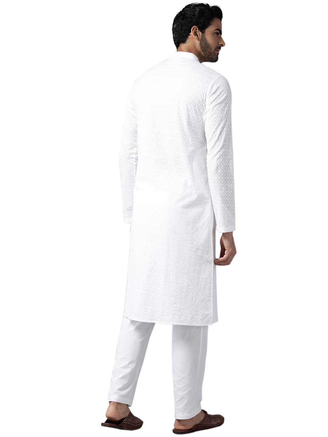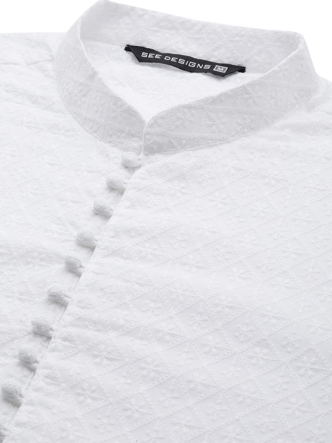 See Designs White Cotton Embroidered Kurta With Pajama Set Mandarin Collar Long Sleeves Chikankari Kurta – SDKT109301XL