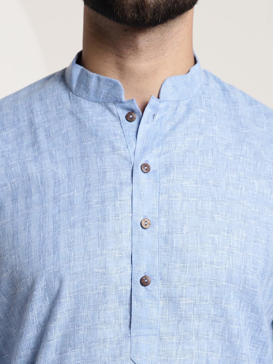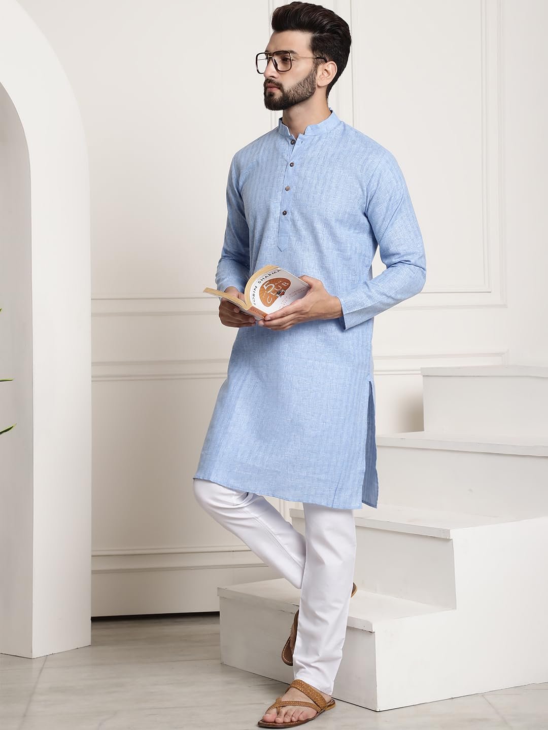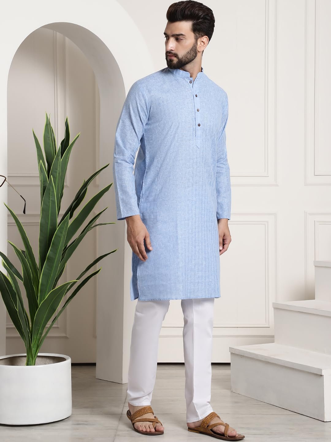 • Collar: Mandarin, Sleeves: Full, Fit type: Regular/Comfort, Length: Knee Length Kurta