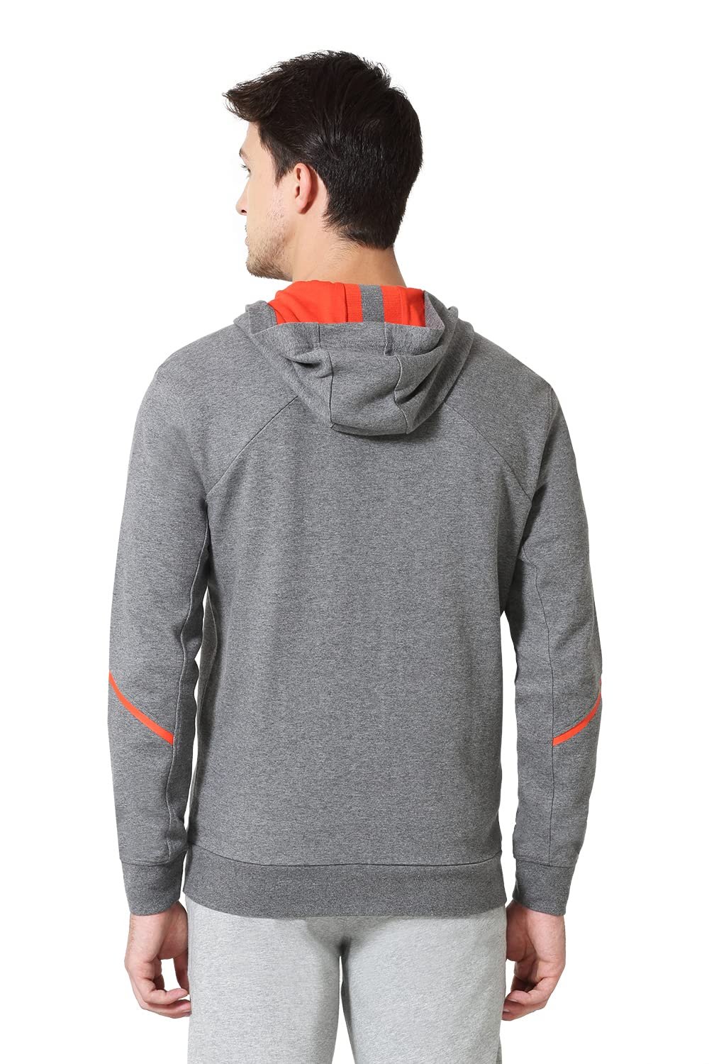 • Neckline: The sweatshirt is framed with a Hooded Neck