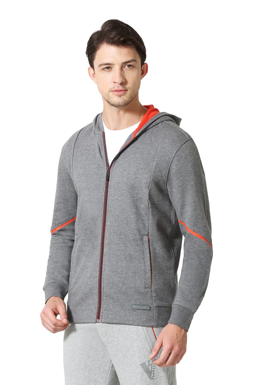 Van Heusen Men’s Cotton Blend Regular Fit Sport Media Pocket Hoodie – Ultra Soft, Breathable_70031_Mid Grey Melange_Large