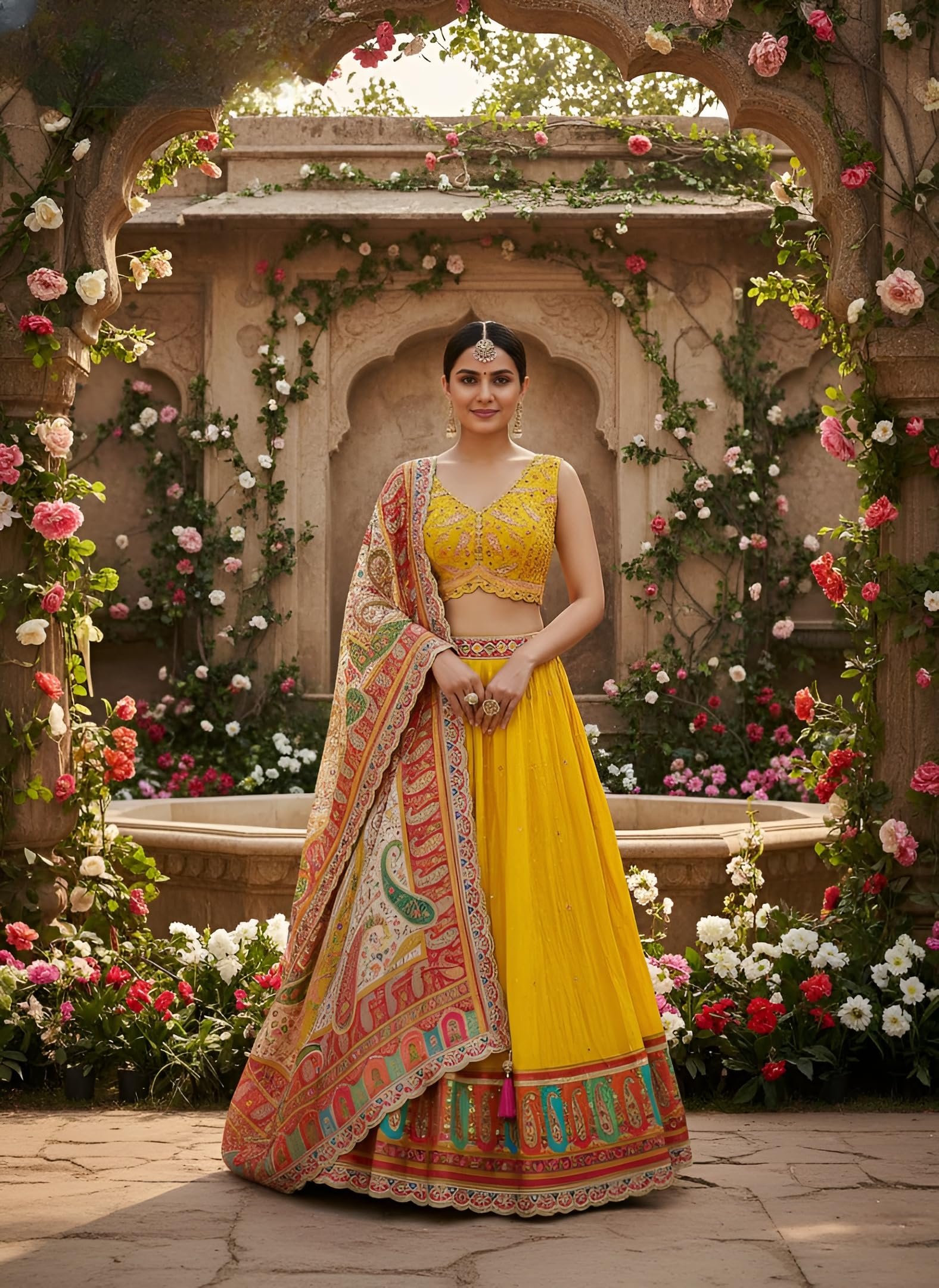 - ELEGANT BRIDAL ENSEMBLE: Stunning yellow embroidered lehenga choli set perfect for weddings, festivals, and special celebrations